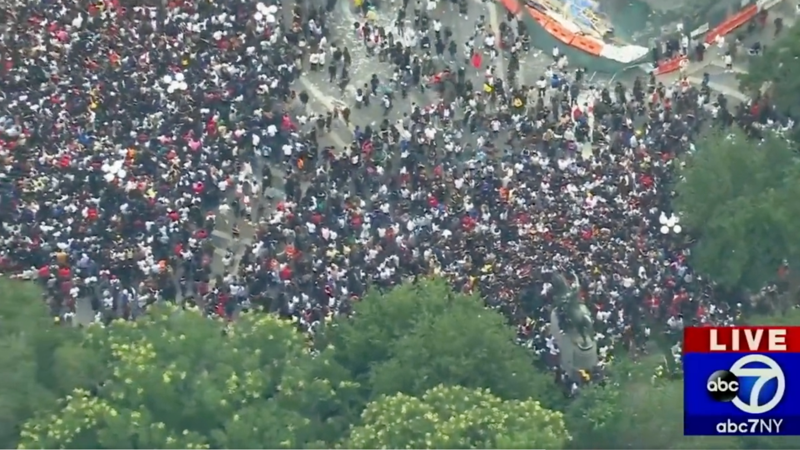 Things quickly plunged into chaos as thousands of people flooded the street and park. According to local ABC News 7, the subways have been diverted around the area and police donned riot gear are using pepper spray to try to control the crowd.