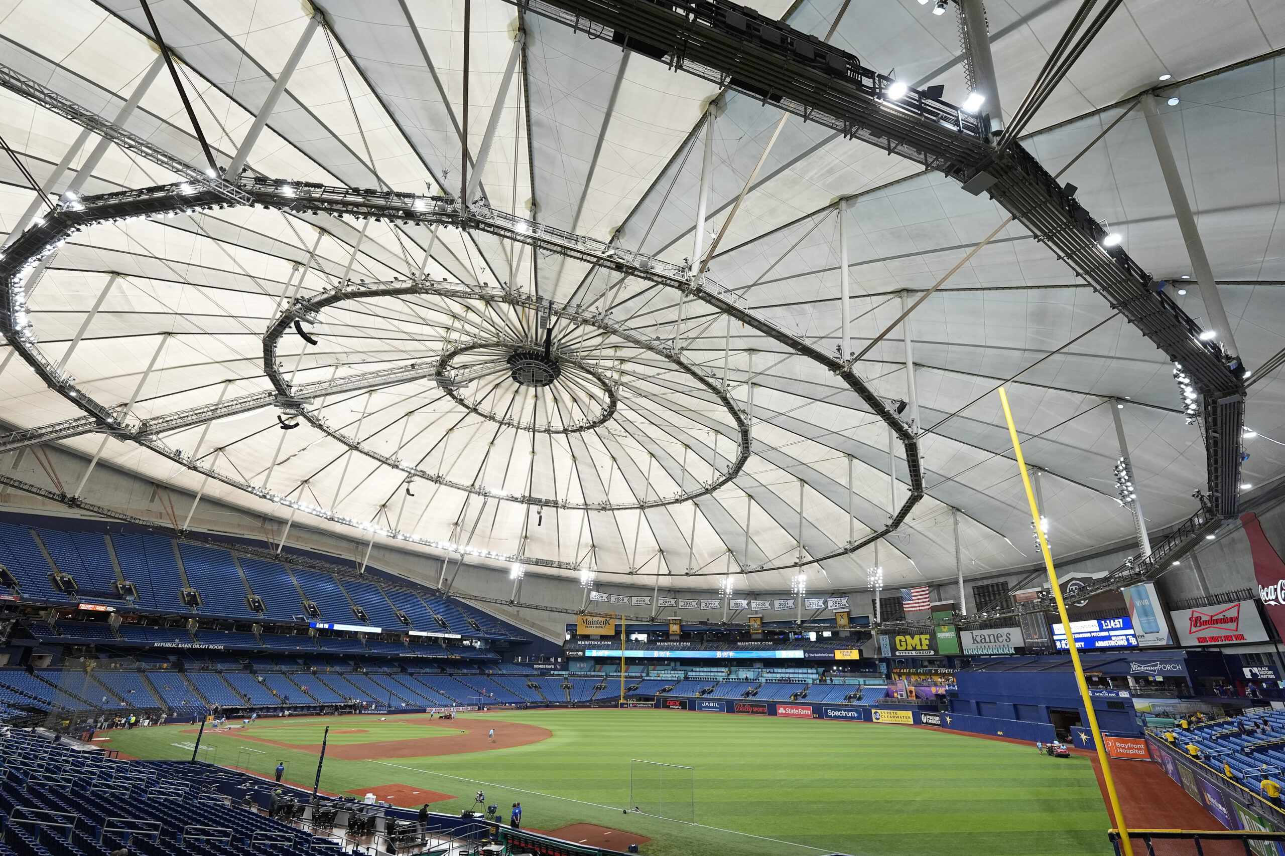 Drone footage captured the effects of Hurricane Milton on Tropicana field: